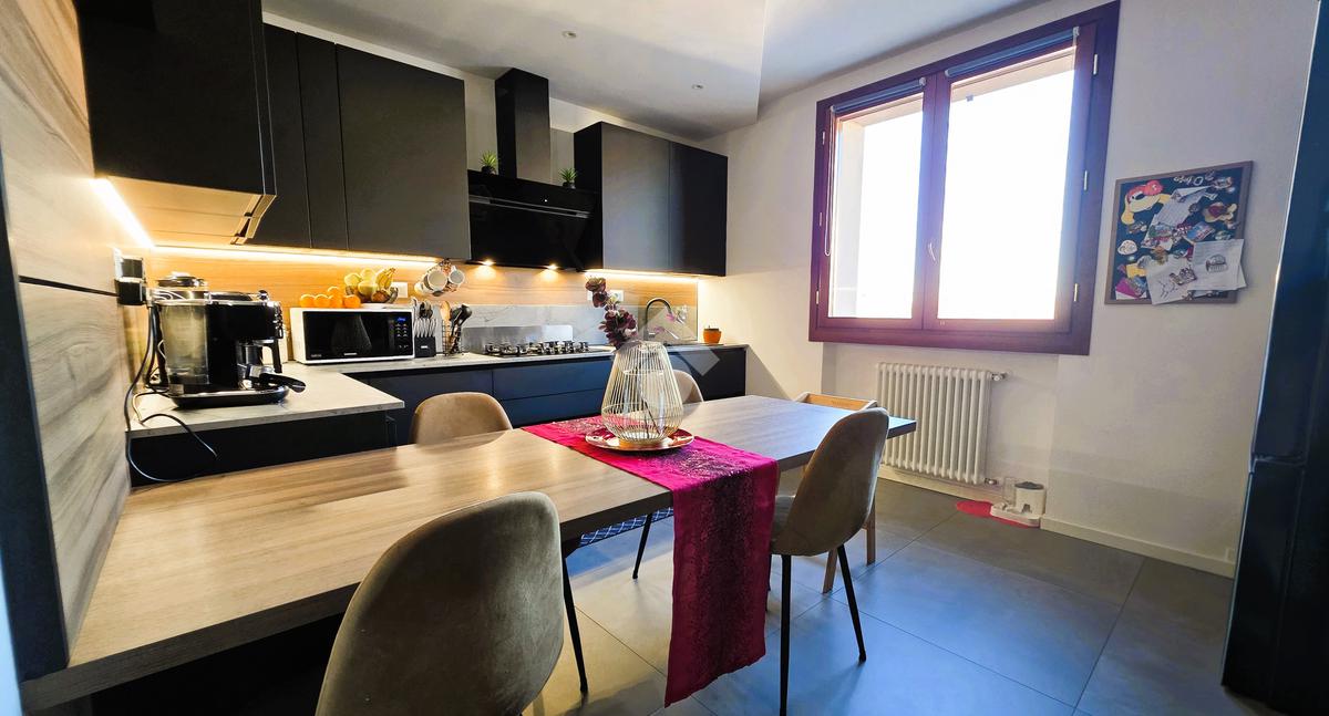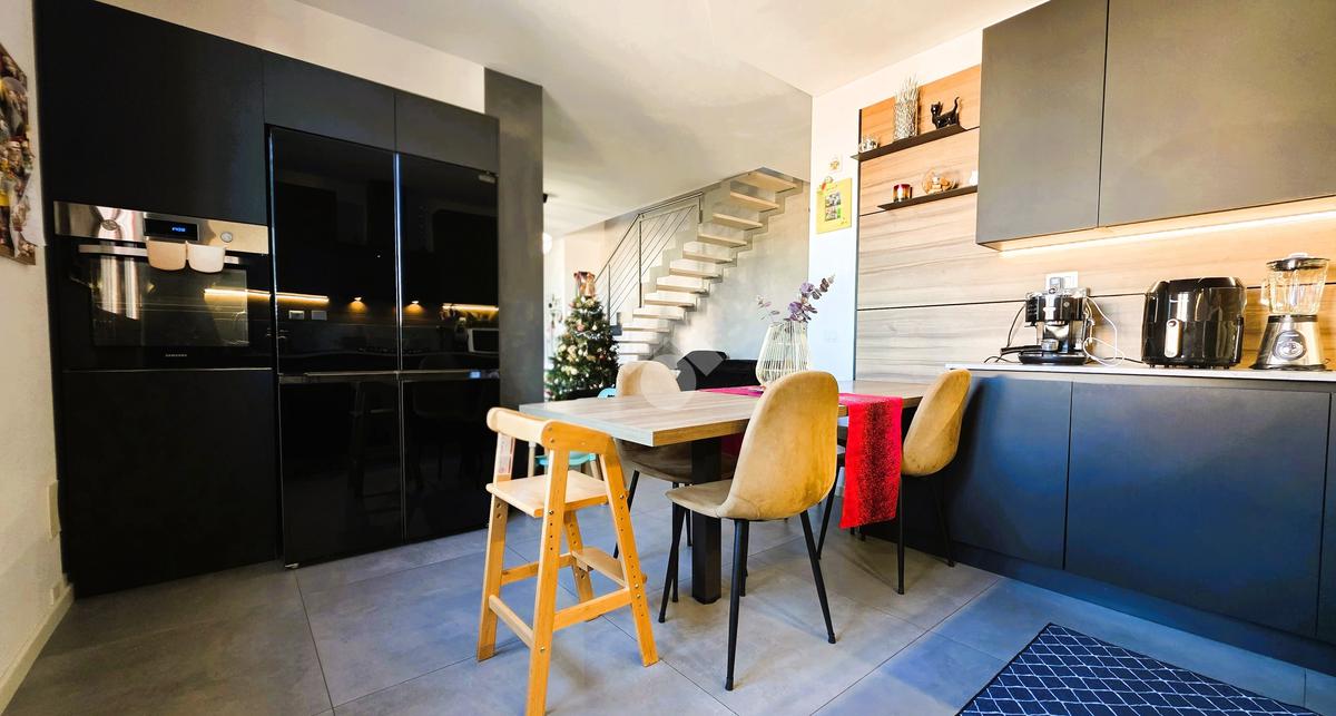 Il soggiorno è luminoso e spazioso, perfetto per momenti di relax e convivialità, la cucina, semiseparata, è dotata di tutte le comodità necessarie per chi ama cucinare.