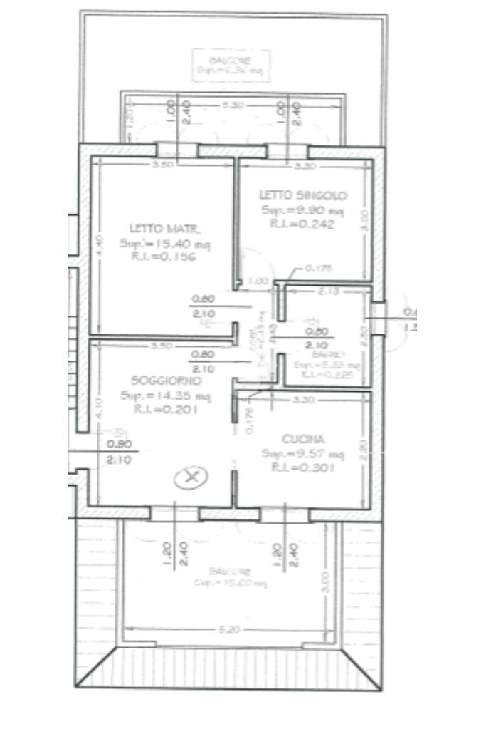L'immobile è composto da soggiorno e cucina abitabile separata con accesso ad un ampio balcone tramite il corridoio accediamo alla zona notte dove troviamo due camere, di cui una matrimoniale ed una singola con accesso al secondo balcone, ed il bagno con box doccia.