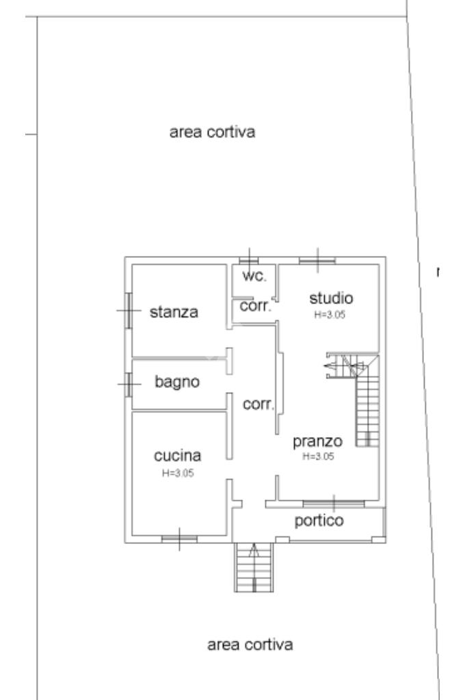 Esternamente l'abitazione è circondata da giardino su quattro lati.